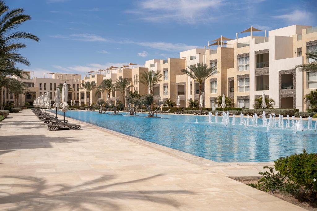 Prime Beachfront Location: Mangroovy Seafront condo in Hurghada offers direct beachfront access with a private beach area. Guests enjoy stunning sea views and a sun terrace, perfect for relaxation.